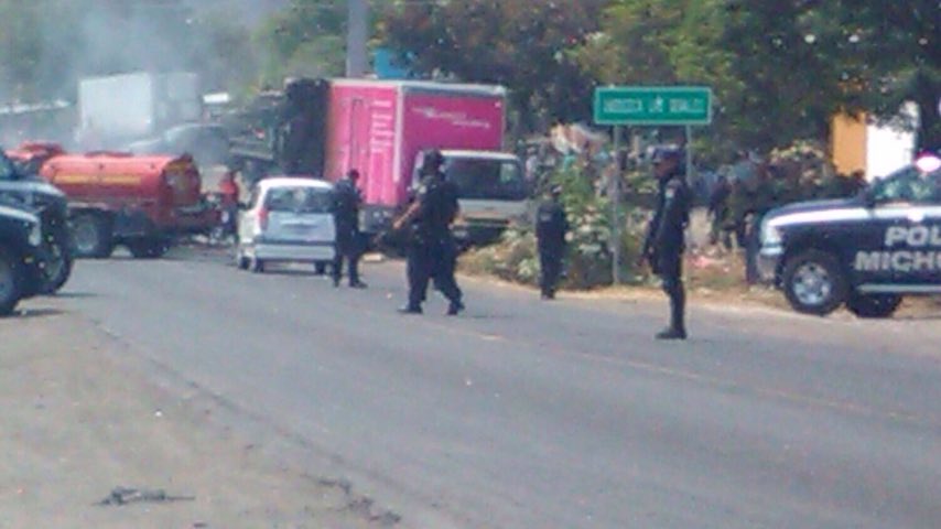 Apatzingán, Mich.,- Habitantes de Múgica, Jacona, Apatzingán y Parácuaro, reportan incendio de unidades y bloqueos carreteros.