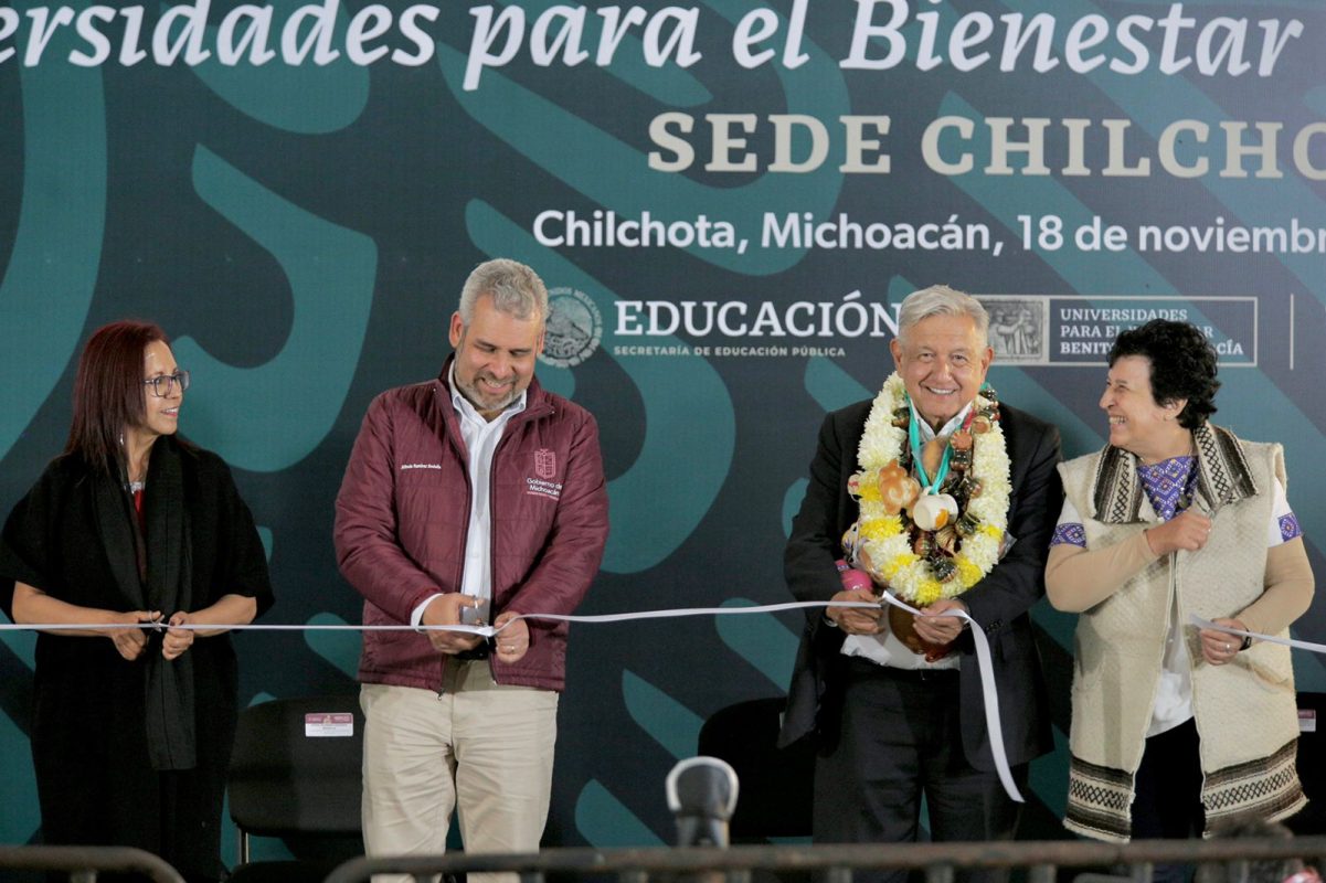 Chilchota, Mich., 18 de Noviembre del 2022.- En la inauguración de la Universidad para el Bienestar «Benito Juárez García», sede Chilchota, el presidente Andrés Manuel López Obrador respaldó el trabajo que viene haciendo el gobernador Alfredo Ramirez Bedolla en el combate a la corrupción, por lo que indicó que no se dará ni un paso atrás en el desarrollo de Michoacán.