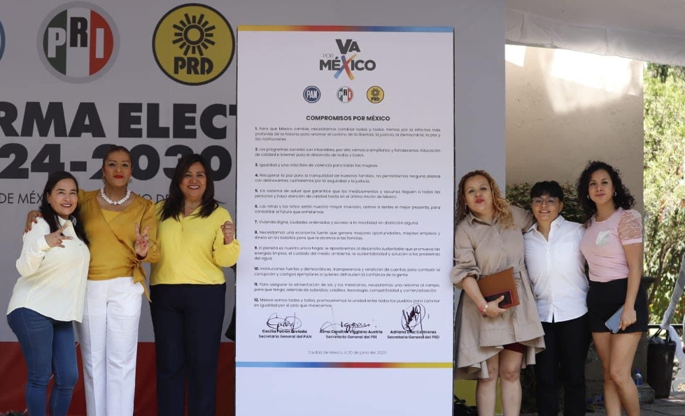 Las Secretarias generales, del PAN, Cecilia Patrón, del PRI, Carolina Viggiano, y del PRD, Adriana Díaz, presentaron los 12 Compromisos por México, que serán la base para la integración de la Plataforma Electoral 2024-2030, para lo cual se realizarán foros regionales en los que se escuchará a la ciudadanía.