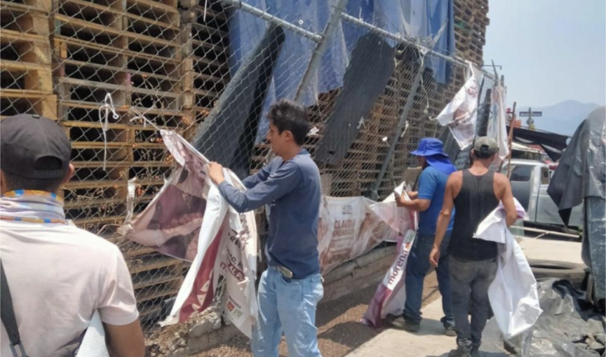 Morelia, Mich., 5 de junio de 2024.- El Ayuntamiento de Morelia, a través de la Secretaría de Servicios Públicos, ha retirado alrededor de 3 mil lonas utilizadas como propaganda política durante el pasado proceso electoral.