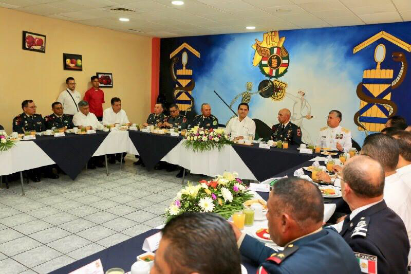 En las instalaciones de la 43 Zona Militar, el mandatario estatal reiteró su llamado a las y los presidentes municipales, para que se sumen al esfuerzo de certificar y fortalecer a la Policía Municipal, con el acompañamiento del Gobierno del Estado.