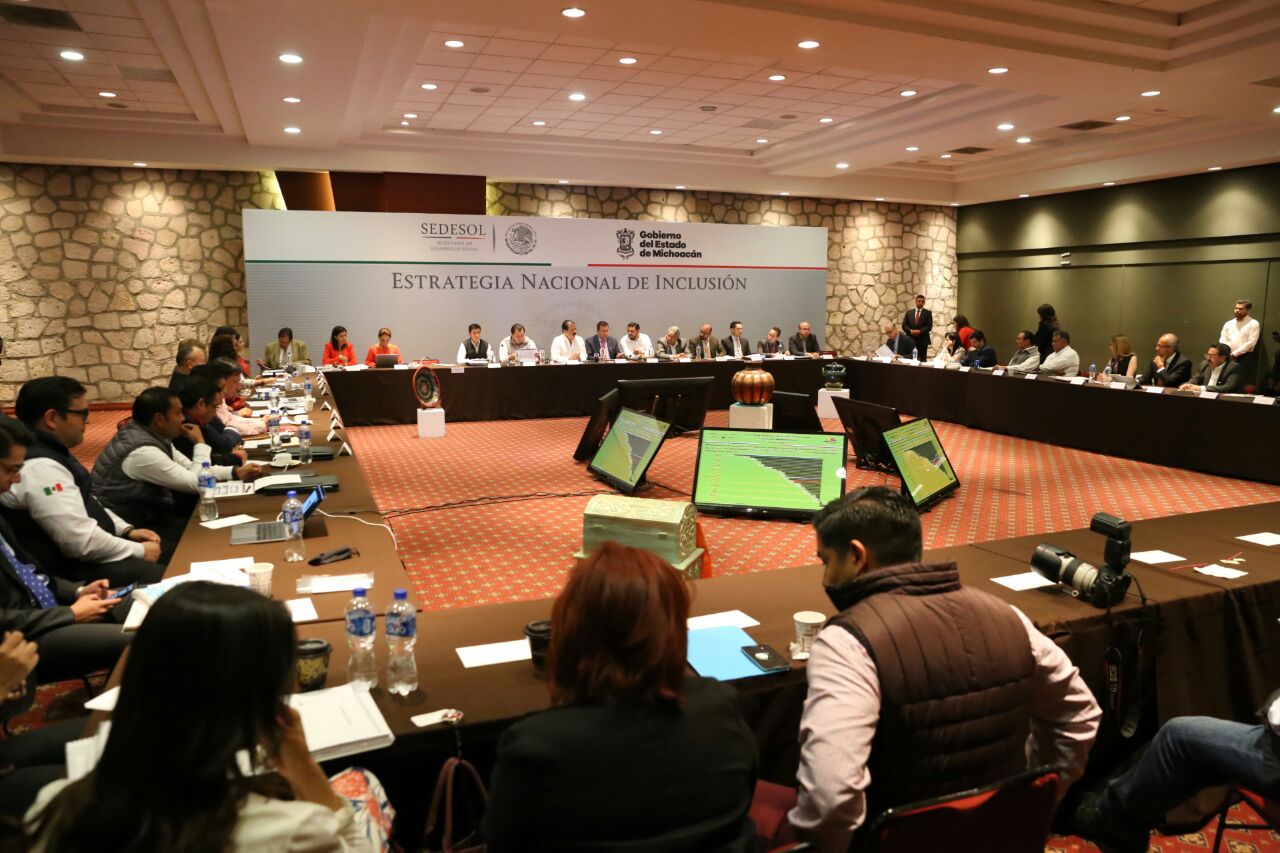 Morelia, Michoacán, a 13 de abril de 2018.- Con el objetivo de dar seguimiento a las acciones implementadas entre Estado y Federación a través de la Estrategia Nacional de Inclusión (ENI), fue instalada la Mesa Directiva integrada por funcionarios de ambas instancias, quienes llevaron a cabo su primera sesión ordinaria.