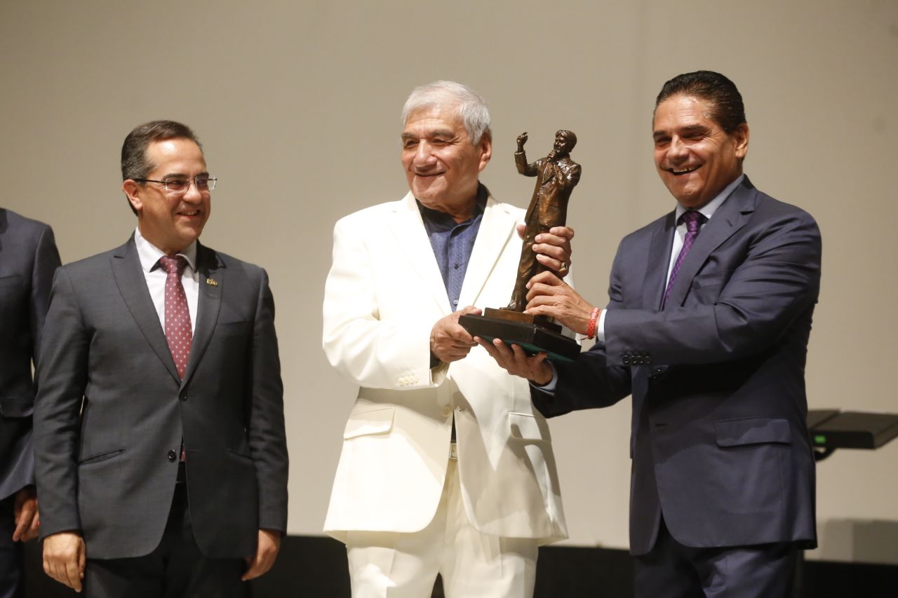 Durante este homenaje el Gobernador Silvano Aureoles entregó a Martín Urieta una estatuilla, que es una réplica de la figura de bronce que fue inaugurada en su honor el día de ayer en Huetamo.