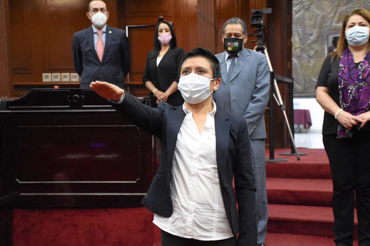 Morelia, Mich., 16 de Junio de 2021.- Ante el Pleno de la LXXIV Legislatura, Alfega Rivera Alejo, rindió protesta como presidenta municipal sustituta del Ayuntamiento de Chilchota, por lo que resta del periodo constitucional 2018-2021.