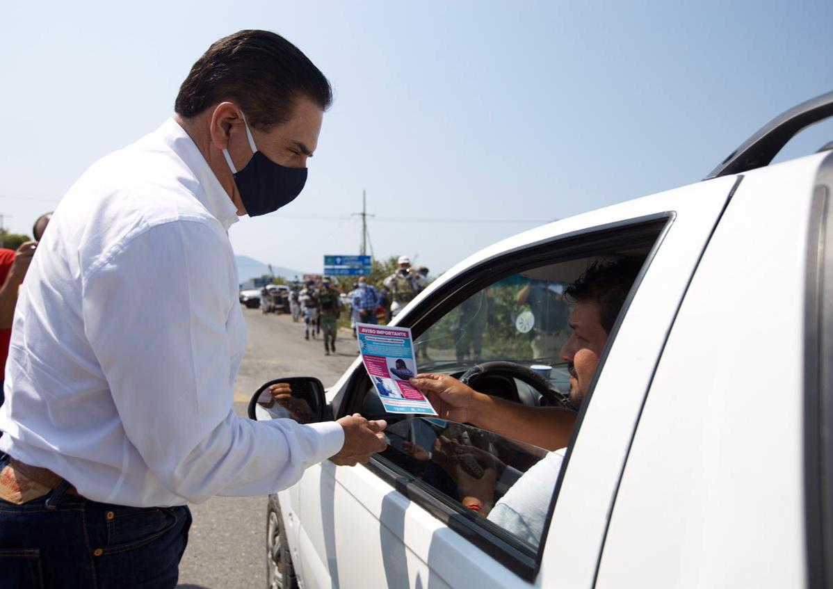 Personalmente, Aureoles entregó información a automovilistas y pasajeros que fueron sujetos a revisión en el filtro de acceso al territorio michoacano.