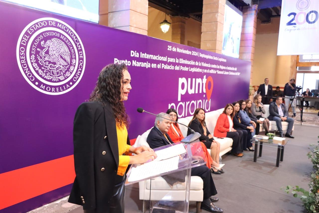 Morelia, Mich., a 25 de Noviembre de 2024.- El Punto Naranja es un espacio que representa un paso firme hacia una sociedad más segura, más empática y, sobre todo, más comprometida con el bienestar de todas las mujeres, y hoy el Congreso del Estado de Michoacán se suma a esta lucha, destacó la diputada Sandra Arreola Ruiz.