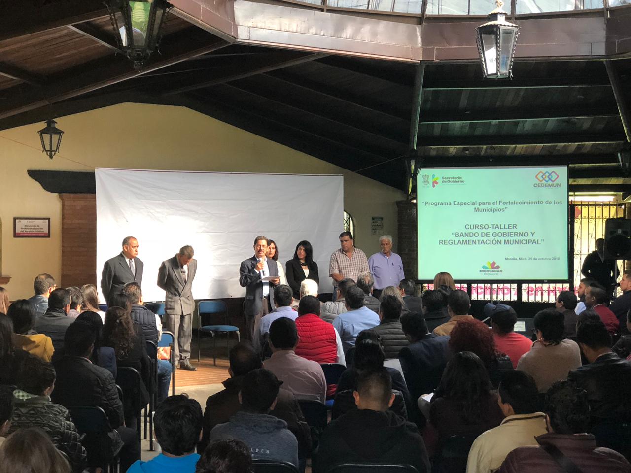 Morelia, Michoacán, a 25 de octubre de 2018.- Más de 250 funcionarias y funcionarios de 69 municipios, se capacitan en cuestiones gubernamentales y reglamentarias, con el curso “Bandos de Gobierno y Reglamentación Municipal”, impartido por el Centro Estatal para el Desarrollo Municipal (Cedemun).
