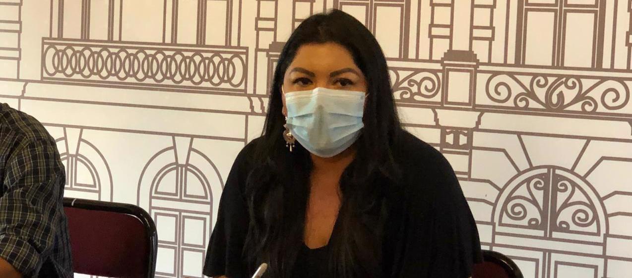 Morelia, Mich., 7 de Agosto de 2020. La presidenta de la Mesa Directiva del Congreso del Estado, Brenda Fraga Gutiérrez, se deslindó de las acciones emprendidas por los elementos policiacos en contra de los aspirantes rechazados que se manifestaron este día afuera del Palacio Legislativo.