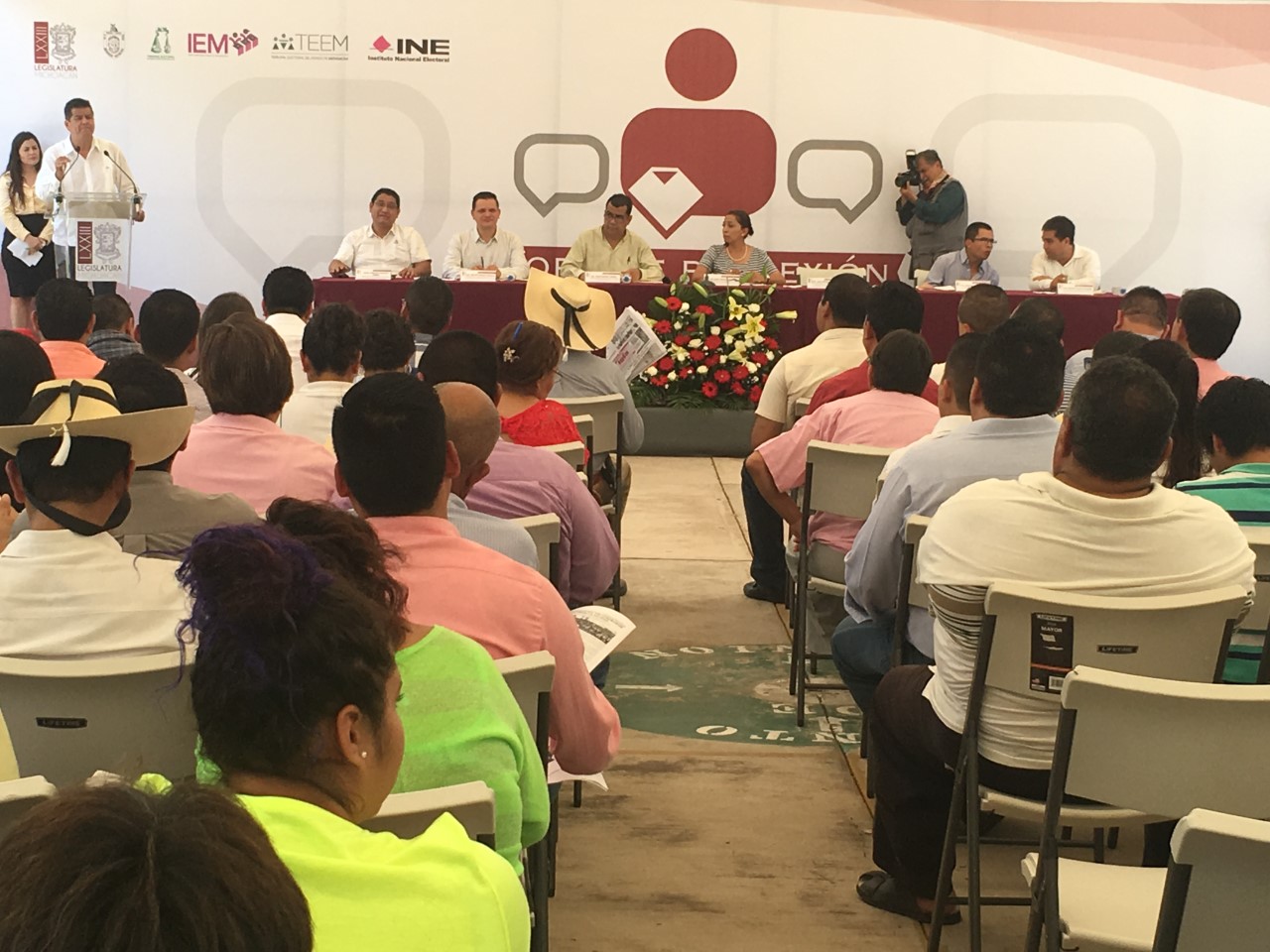 Huetamo,Mich., a 1 de septiembre de 2016.- Juan Bernardo Corona, Diputado Electo por el Distrito XVIII, acompañado de los demás integrantes de la Comisión de Asuntos Electorales del Congreso del Estado, Alma Mireya González Sánchez, Sergio Ochoa Pérez y Héctor Gómez Trujillo, dieron inicio al Foro de Reflexión Rumbo a la Reforma Electoral, esta vez, con sede en Huetamo.