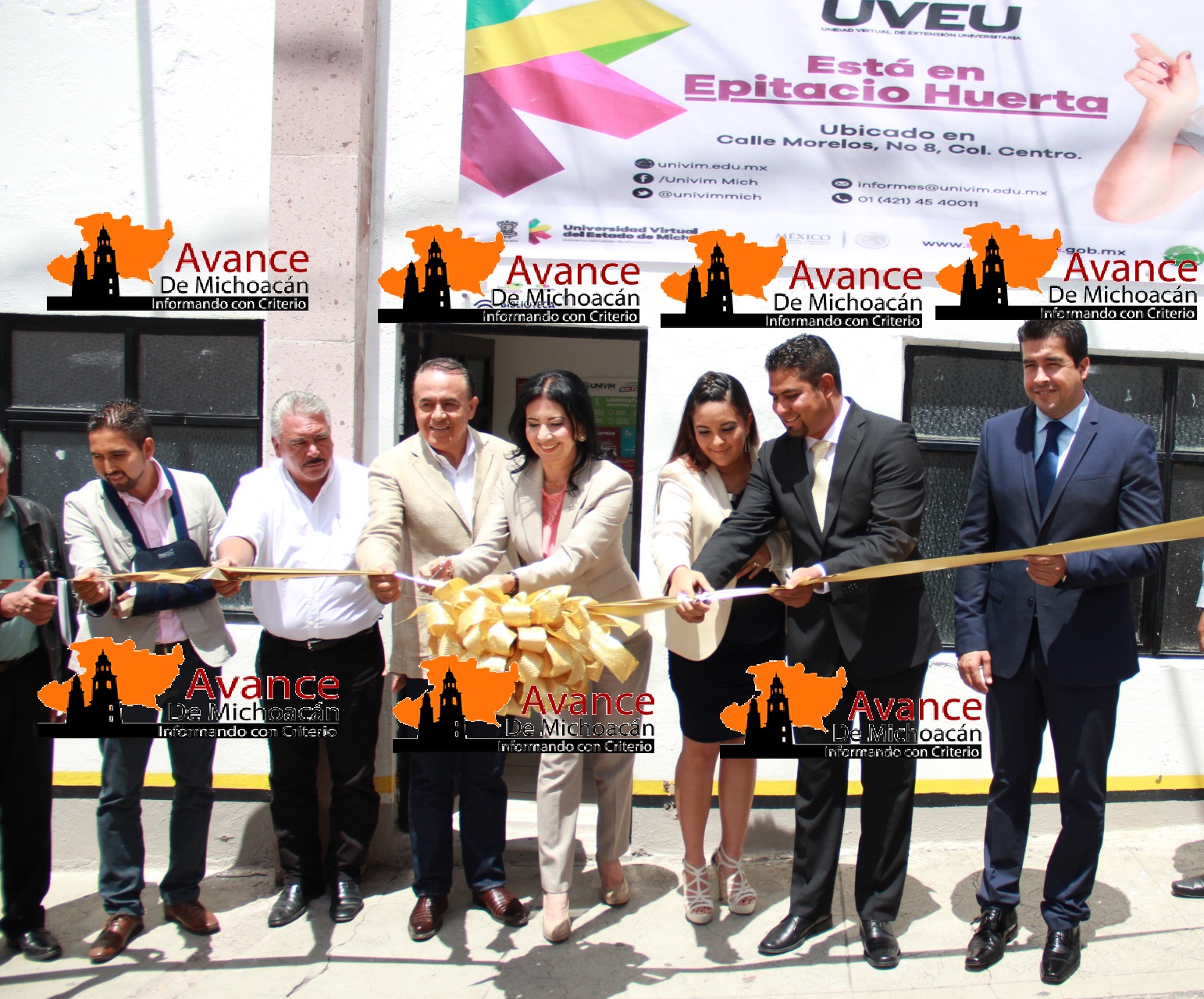 Epitacio Huerta, Mich., a 7 de agosto de 2016.- La rectora de la Universidad Virtual del Estado de Michoacán (Univim) Silvia Mendoza Valenzuela y el presidente municipal de Epitacio Huerta, Miguel Ángel Vega Jasso, inauguraron la Unidad Virtual de Extensión Universitaria (UVEU), en la cabecera municipal, misma que tuvo una inversión de 32 mil pesos, en beneficio de los jóvenes y adultos de esta zona.