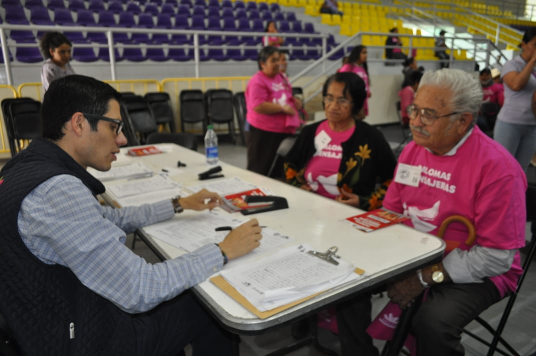 Uruapan, Michoacán, a 15 de diciembre de 2019.- Durante la onceava edición de las Jornadas Integrales de Atención al Migrante, 177 personas adultas mayores, originarias de tres municipios michoacanos, fueron integradas al programa sello del Gobierno de Silvano Aureoles Conejo, Palomas Mensajeras.