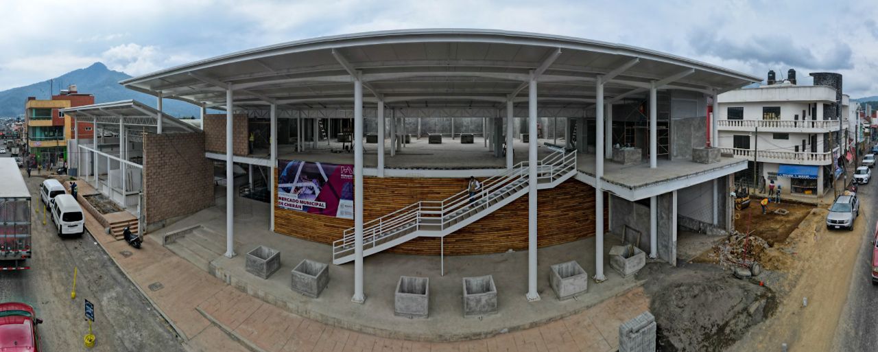 Cherán, Mich 12 de Diciembre de 2023.- La Secretaría de Comunicaciones y Obras Públicas (SCOP) construye el nuevo mercado municipal de Cherán, obra que beneficiará a más de 20 mil habitantes de esta comunidad con autogobierno y que fomentará el desarrollo económico de la zona.