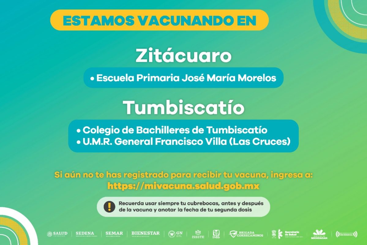 Morelia, Mich., a 25 de Marzo de 2021.- Se mantiene activa la vacunación anti COVID-19 para adultos mayores de 60 años en los municipios de Zitácuaro y Tumbiscatío.