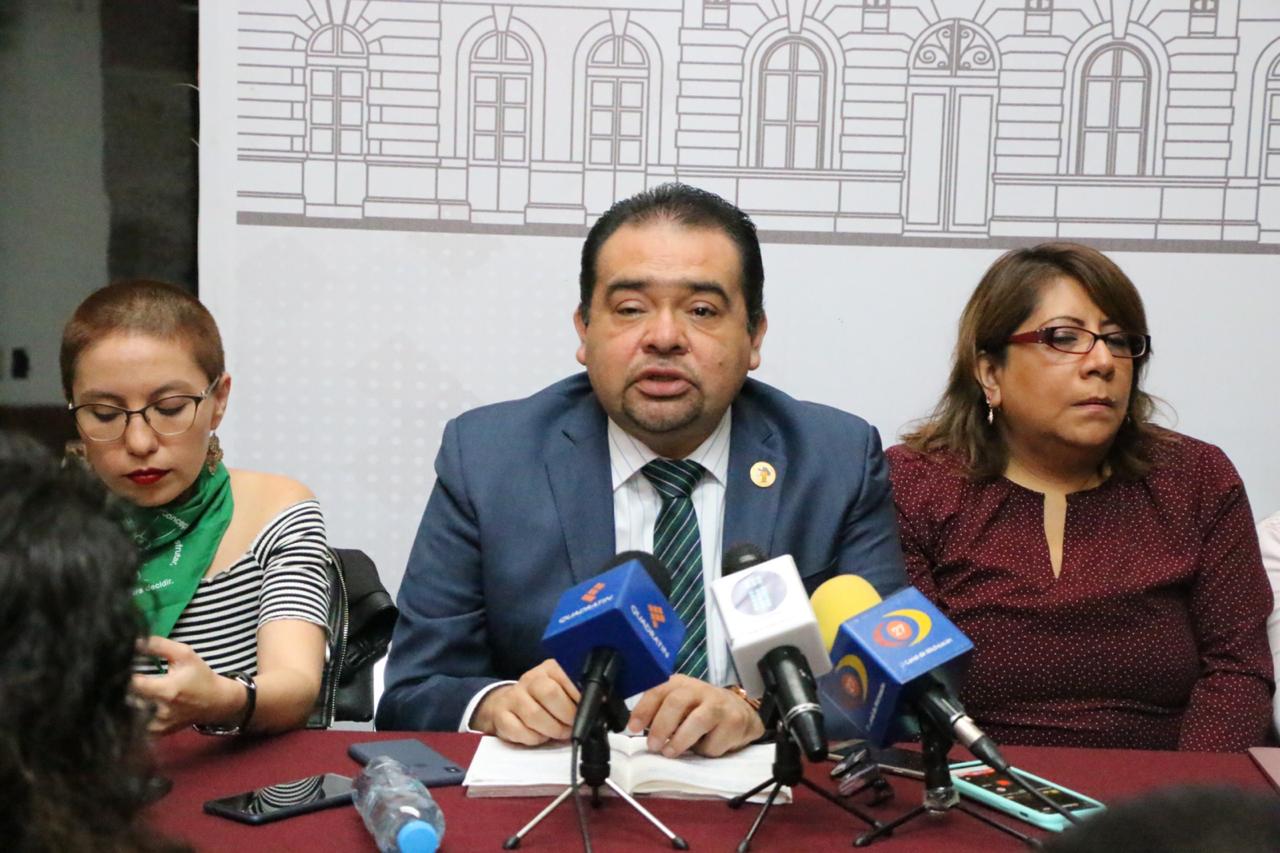Morelia, Michoacán, 09 de julio del 2019.- Antonio Martínez Soto, integrante del Grupo Parlamentario del Partido de la Revolución Democrática en la LXXIV Legislatura del Congreso del Estado, con el respaldo de organizaciones de la sociedad civil como Humanas Sin Violencia, Red Asaleas, Las Libres, unidas el colectivo denominado Marea Verde, presentó este martes en Conferencia de Prensa la propuesta de reforma al Código Penal del Estado para cambiar el concepto de aborto, considerándolo delito sólo después de las 12 primeras semanas.