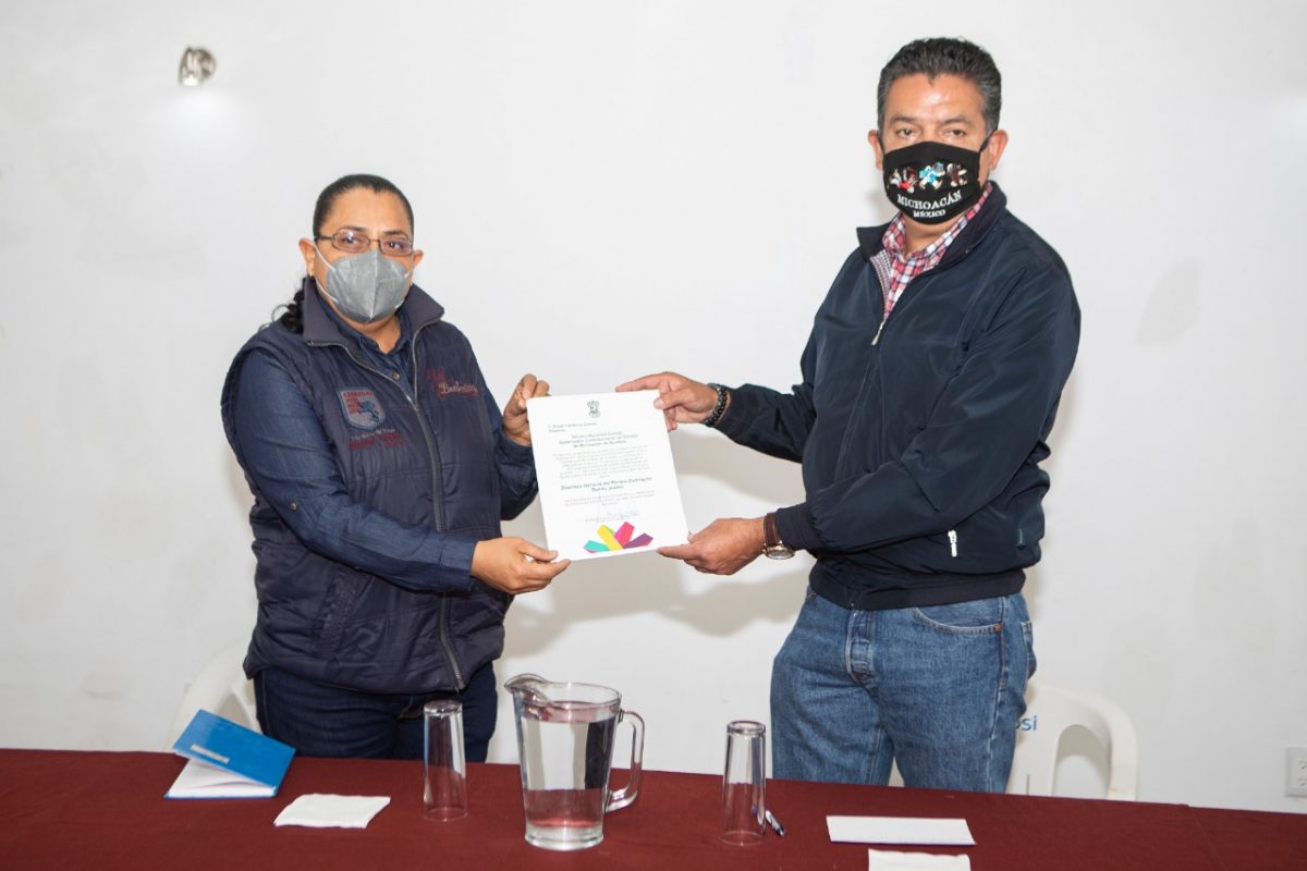 Morelia, Mich, a 5 de febrero de 2021.- El titular de la Secretaría de Medio Ambiente, Cambio Climático y Desarrollo Territorial, Semaccdet, Ricardo Luna García, entregó el nombramiento como nueva directora del Zoológico de Morelia “Benito Juárez”, a Eliuth Cárdenas Gómez, quien sustituye a Josué Rangel Díaz.