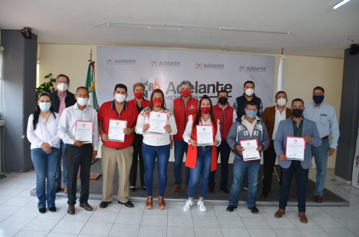También el presidente junto con secretarios del CDE y delegados regionales hicieron entrega de nombramientos, ratificaciones y en su caso de prórrogas a dirigencias municipales y con ello se complementa el 90 por ciento de municipios que ya cuentan con una dirigencia municipal priista, en los próximos días se espera que quede el cien por ciento de los municipios michoacanos para dar paso a la reestructura de la estructura al interior de cada comité, así como de sectores y organizaciones.
