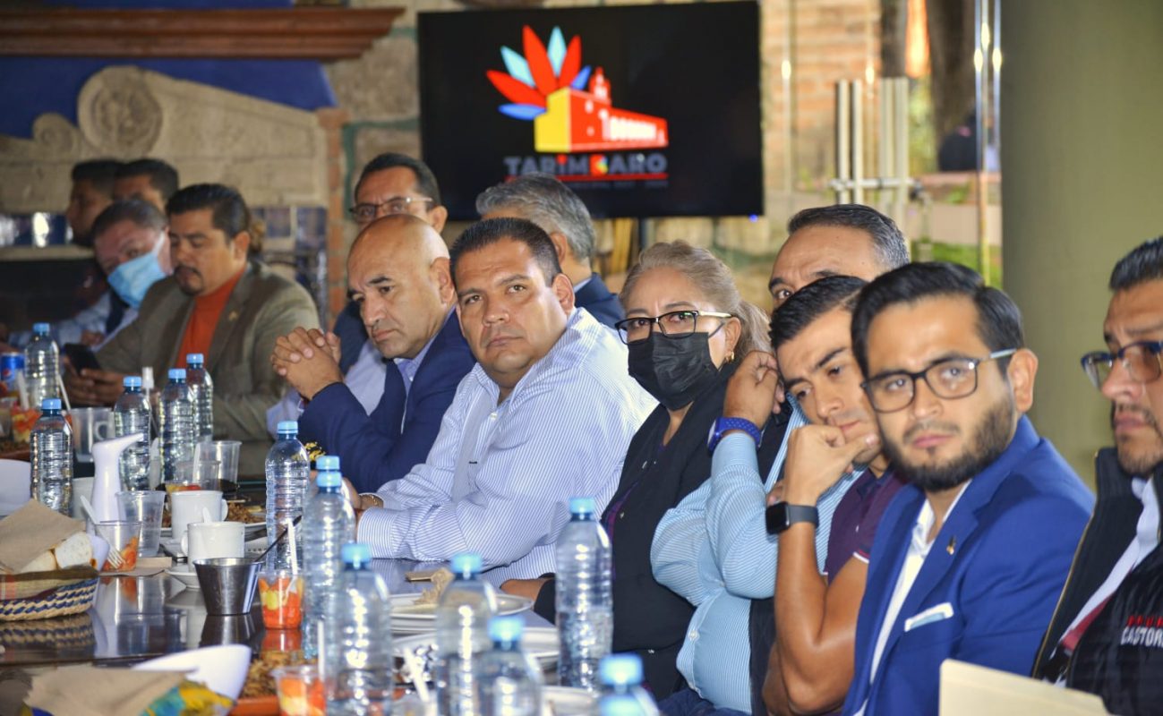 Tarímbaro, Mich., a 6 de noviembre de 2021.- Brindar seguridad, un estado de derecho y tramitología rápida fue a lo que se comprometió el Presidente Municipal de Tarímbaro, Bladimir González Gutiérrez ante el sector empresarial michoacano.En la reunión, el Alcalde de Tarímbaro comentó que las empresas generan el 85 por ciento de inversión en el país y todos los empleos formales, de ahí su importancia para detonar la economía en los municipios.Añadió que para lograr que sigan invirtiendo en Tarímbaro se debe reforzar la seguridad, por ello, explicó que cuenta con cerca de 200 elementos trabajando las 24 horas del día, un c4 que monitorea todas las patrullas por GPS y 10 cámaras instaladas en los lugares con mayor índice de inseguridad en Tarímbaro.Asimismo, adelantó la implantación de una oficina de la Fiscalía General en el municipio que contará con 60 elementos policíacos y 4 fiscales.Bladimir González también apuntó que la administración que encabeza vinculará a la empresas con el Gobierno Federal para obtener beneficio de programas federales como el de «Jóvenes construyendo el futuro», el cual vincula a hombres y mujeres de 18 a 29 años con empresarios para que sean aprendices y el Gobierno Federal les apoye con una beca de 4 mil 310 pesos, recurso que los empresarios se ahorrarán en nómina durante doce meses.En su participación, el Presidente del Consejo Coordinador Empresarial del Estado de Michoacán, Raymundo López Olvera, destacó que las cámaras empresariales representan a 50 mil empresas a nivel nacional, por ello este sector juega un papel muy importante, ya que generan riqueza y aportación social en el país.