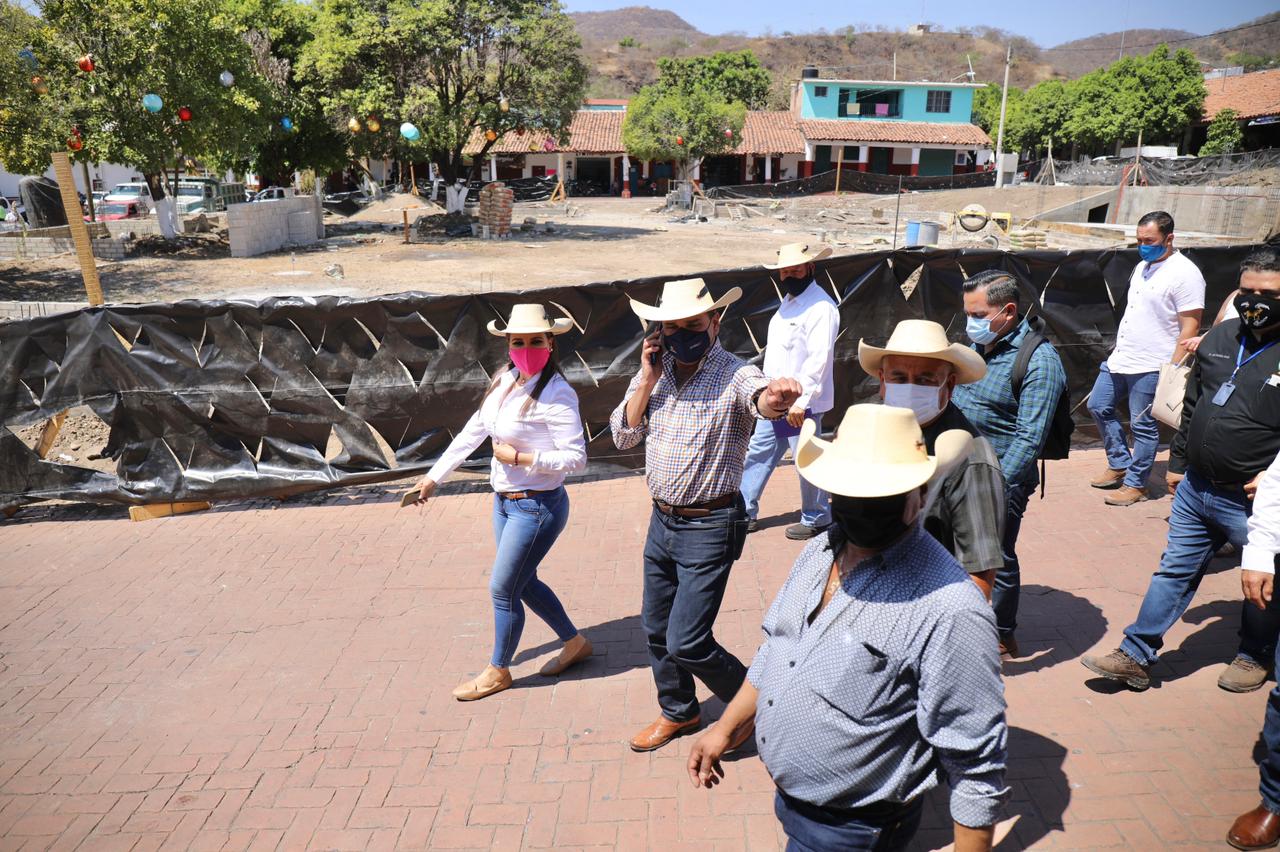 Tras la entrega de los sementales, el Gobernador hizo un recorrido por el municipio para supervisar el avance de la remodelación y rehabilitación de la plaza principal y la presidencia.