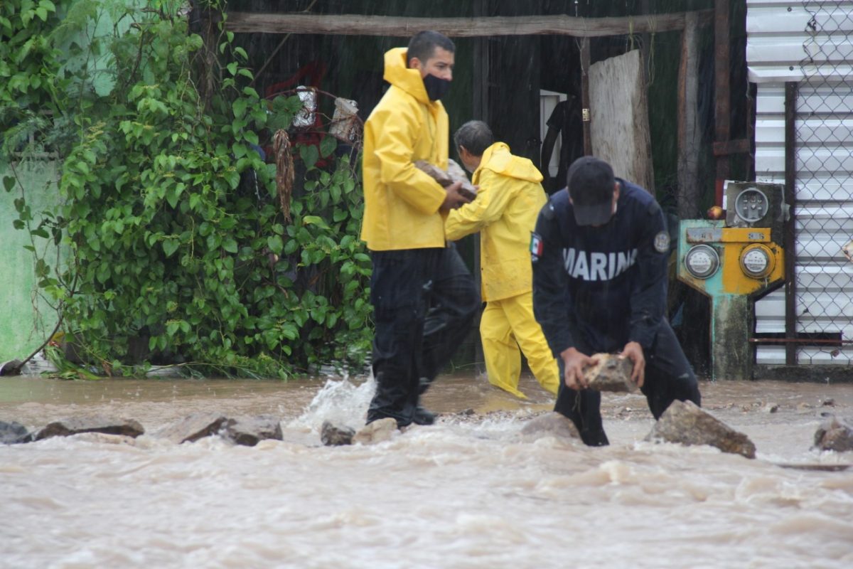 Durante los recorridos personal naval, apoyó en la evacuación de 52 personas de zonas inundadas del fraccionamiento “La Joya” y trasladaron a 12 personas del poblado “La Villita” a los albergues temporales habilitados para atención de la población civil.