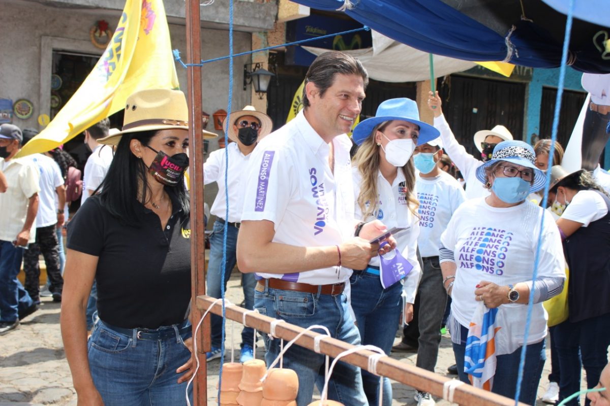 Morelia, Mich., a 15 de Mayo de 2021.- La candidata del PRD a diputada local por el Distrito 16 de Morelia, Lucila Martínez Manríquez, y el abanderado del PRD-PAN a la presidencia municipal de la capital michoacana, Alfonso Martínez Alcázar, se reunieron este sábado con habitantes de la emblemática tenencia de Capula.