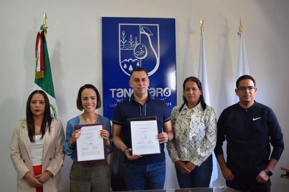 La directora general del Sí Financia, Areli Gallegos Ibarra y el presidente municipal de Tancítaro, Gerardo Mora Mora, firmaron el convenio de colaboración para trabajar en conjunto y facilitar la colocación de créditos y otros servicios complementarios.