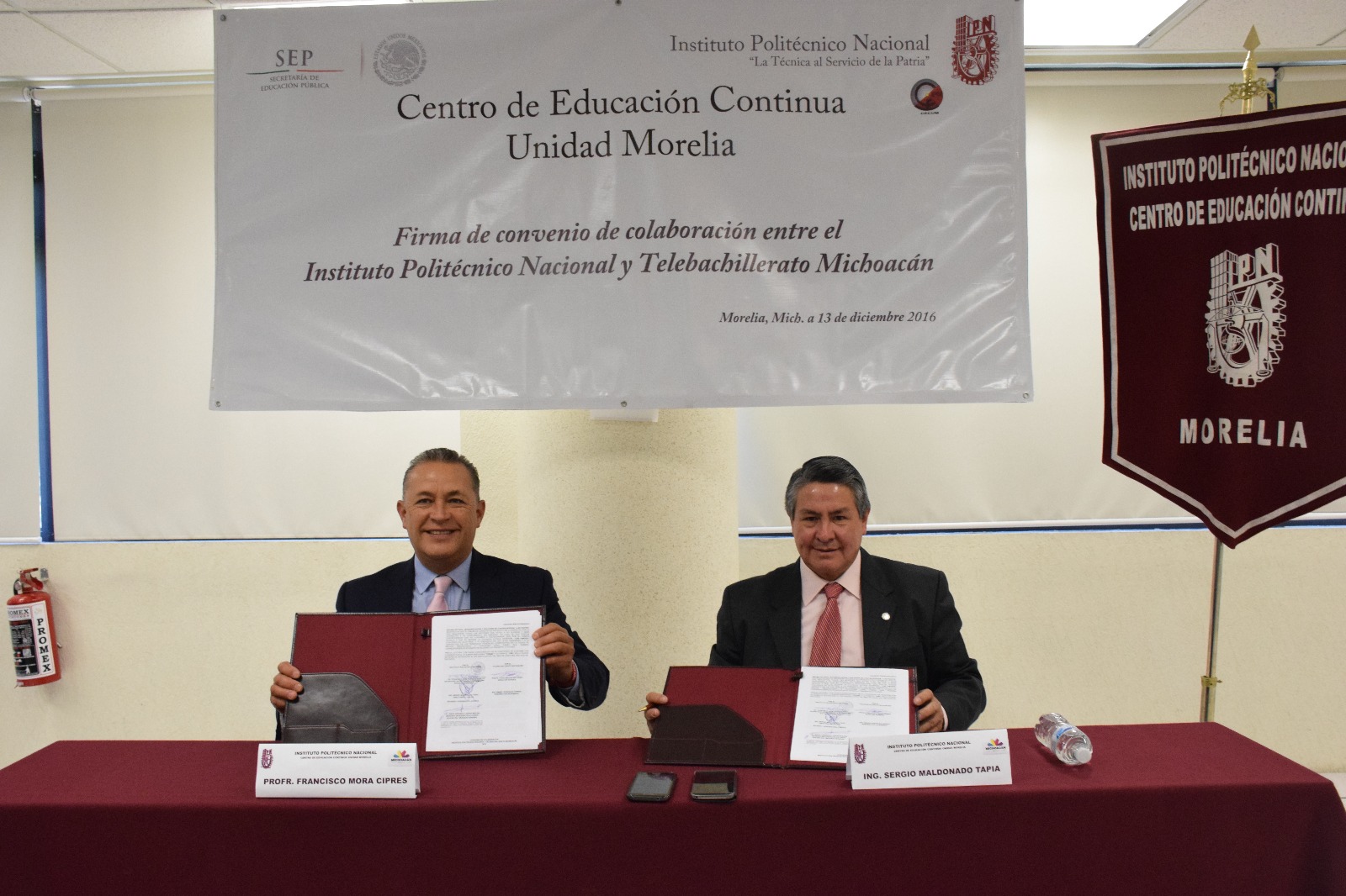 Morelia, Mich, a 14 de diciembre de 2016.- Con el objetivo de fortalecer los procesos de enseñanza y aprendizaje mediante la planeación y evaluación de los docentes, el Telebachillerato Michoacán firmó un convenio de colaboración con el Instituto Politécnico Nacional (IPN) Unidad Morelia, con el que se atenderá a un total de 10 municipios mediante una inversión de 214 mil 200 pesos.
