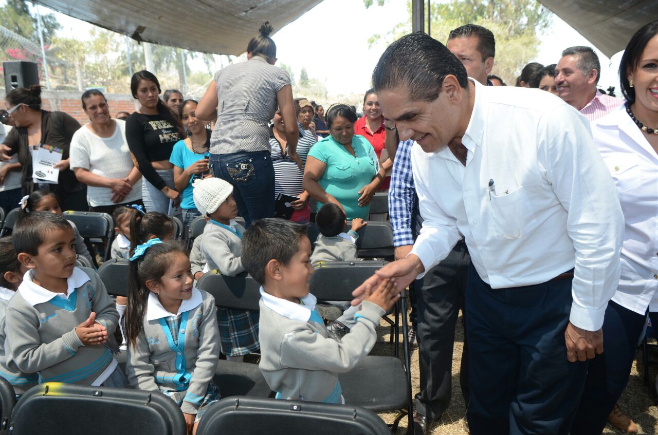 Los Naranjos, comunidad de Indaparapeo, Mich., a 8 de abril del 2016.- Con la finalidad de que en diciembre Michoacán cuente con escuelas que ofrezcan espacios dignos para mejorar la calidad educativa, este viernes el Gobernador Constitucional del Estado, Silvano Aureoles Conejo dio arranque a la sustitución de escuelas de palitos por «Mi Nueva Aula» en el Jardín de Niños «Miguel Hidalgo» de la comunidad de Los Naranjos en el municipio de Indaparapeo.