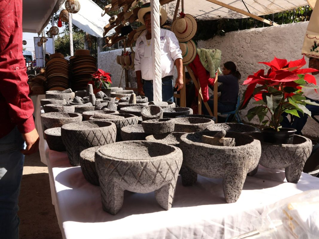 En la plaza principal de esta tenencia encontrarás además de los tradicionales molcajetes en más de 70 diseños diferentes, artesanos de otros localidades del estado con productos que podrán ser el regalo perfecto para esta próxima temporada navideña.