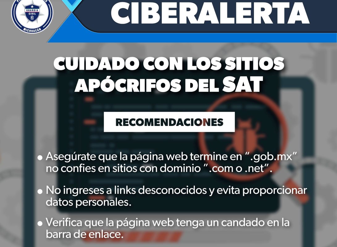 A través de las labores de monitoreo e investigación de los elementos de la Policía Cibernética de la Guardia Civil, detectaron probables estafas a través de páginas web que usurpan la identidad del Sistema de Administración Tributaria (SAT).