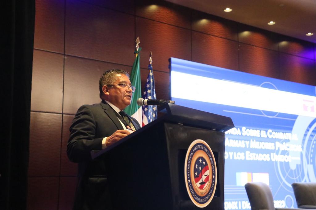 Ciudad de México, a 5 de Diciembre del 2023.- Comprometidos con dignificar los lazos de confianza y fortalecimiento al actuar policial, el titular de la Secretaría de Seguridad Pública (SSP), José Alfredo Ortega Reyes participó en la “Mesa Redonda sobre el Combate al Tráfico de Armas y Mejores Prácticas en México y los Estados Unidos”, donde presentó los avances en la estrategia para garantizar la paz en Michoacán.