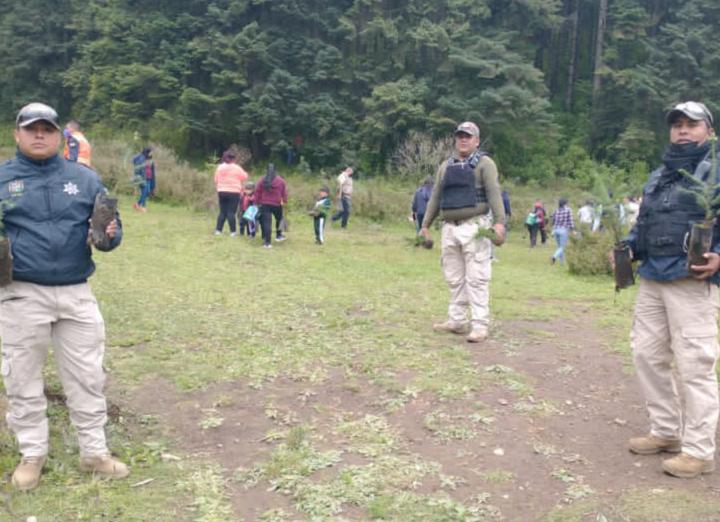 A través del Agrupamiento Forestal y Ambiental, los agentes de la Policía Michoacán realizan labores para sembrar un total de 15 mil plantas de Oyamel y 50 mil plantas del género Pino.