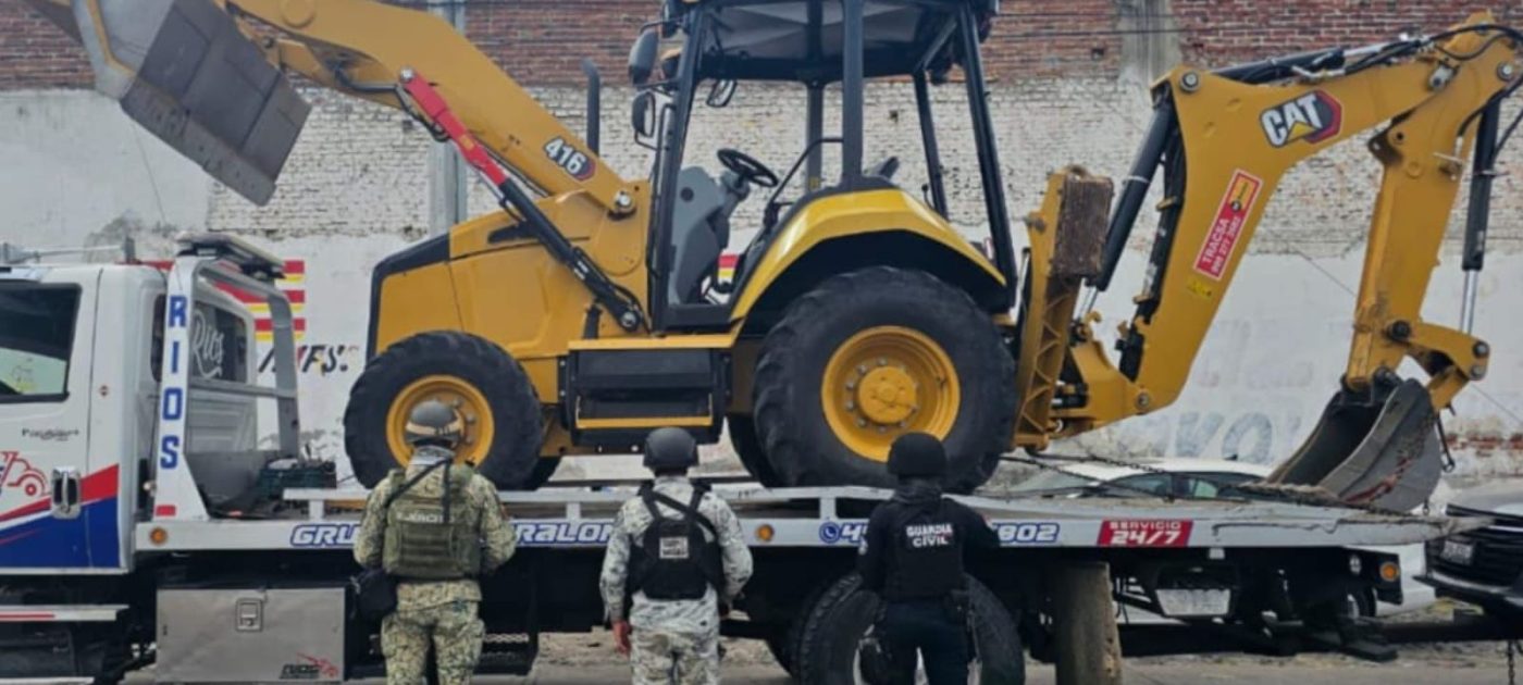 Churumuco, Mich., 10 de Enero de 2024.- Como resultado del reforzamiento de las tareas operativas en el municipio de Churumuco, los agentes de las secretarías de Seguridad Pública (SSP), y de la de Defensa Nacional (Sedena), junto con la Guardia Nacional (GN); decomisaron dos retroexcavadoras, las cuales eran utilizadas por células delictivas para bloquear y dañar caminos, de acuerdo con información de inteligencia.