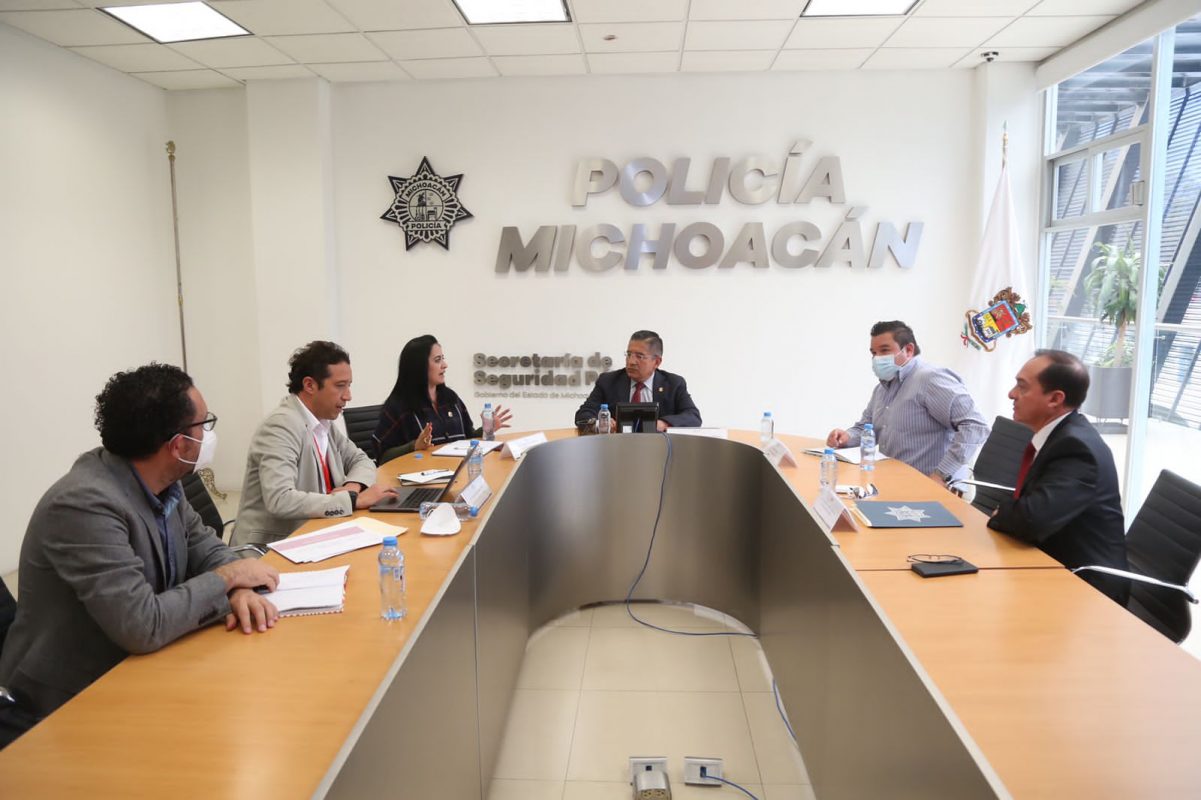 Morelia, Mich., a 06 de Diciembre de 2021.- El titular de la Secretaría de Seguridad Pública (SSP), General José Alfredo Ortega Reyes, sostuvo una mesa de trabajo con la secretaria del Medio Ambiente, Cambio Climático y Desarrollo Territorial (Semaccet), Gladis Butanda Macias, así como con los representantes de la Comisión Coordinadora del Transporte Público (Cocotra), y el director de Tránsito y Movilidad del Estado de Michoacán, Eduardo Arturo Bailleres Mendoza, para definir estrategias que garanticen la seguridad vial de la ciudadanía michoacana.