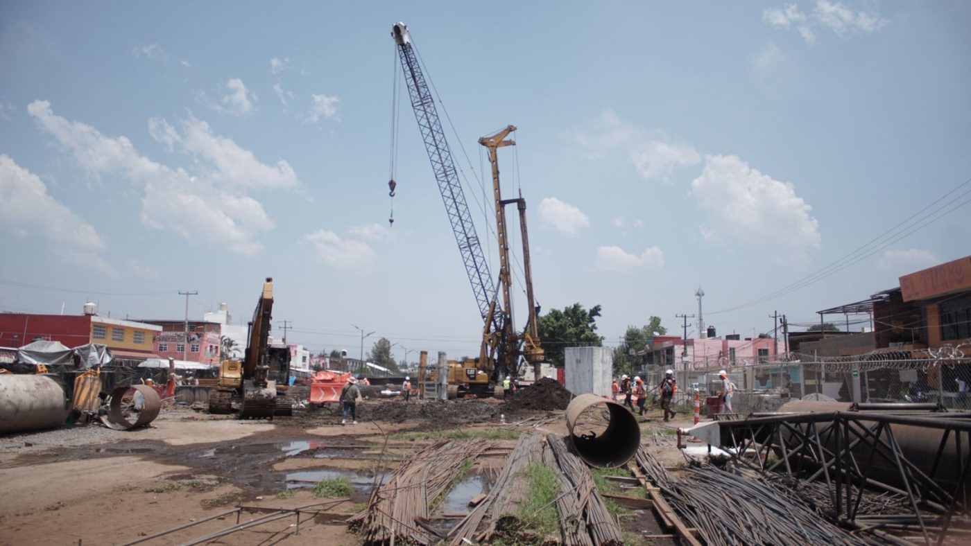 En su recorrido señaló que los trabajos de cimentación y armados de pila que servirán como sostén para las estaciones, van en tiempo y forma.
