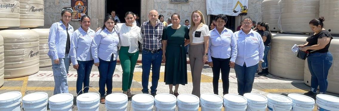 Durante el evento, el presidente municipal, Eric Gaona García y el Cabildo, encabezaron la entrega de tinacos de 1,100 litros de capacidad marca Rotoplas, equipados con su respectivo sistema de conexión, así como cubetas de 19 litros de impermeabilizante, todo ello a bajo costo y subsidiado por el Gobierno Municipal.