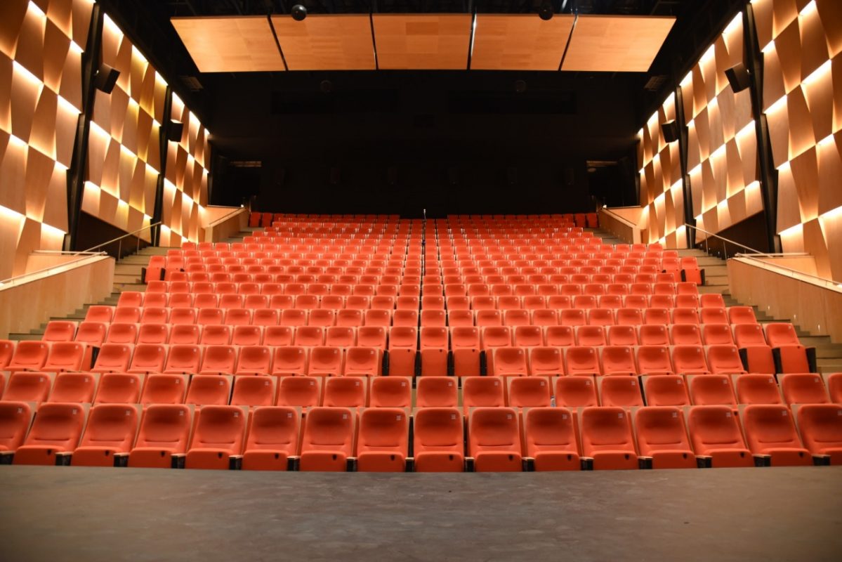 La isóptica, de vanguardia en comodidad, incluye butacas acojinadas, ergonómicas y antiflama, con acabados en reposabrazos y respaldo en madera noble de haya, con óptima respuesta acústica. En su diseño de líneas estilizadas y elegancia, se involucraron desde ebanistas hasta artesanos tradicionales de martillado de cobre de Santa Clara.