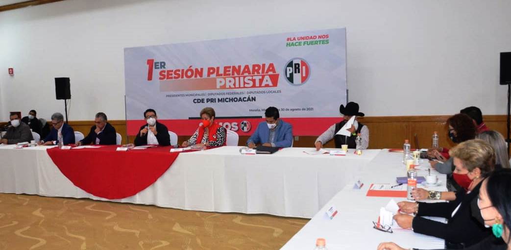 Morelia, Mich., a 30 de Agosto de 2021. Bajo la convicción de trabajar unidos y con miras a la construcción de un proyecto de partido, el presidente del Comité Directivo Estatal (CDE) del Partido Revolucionario Institucional (PRI), Eligio González Farías y la secretaria general, María del Rocío Luquín Valdés, encabezaron la Primera Sesión Plenaria Priista con la participación de presidentes municipales, diputados federales y locales electos.