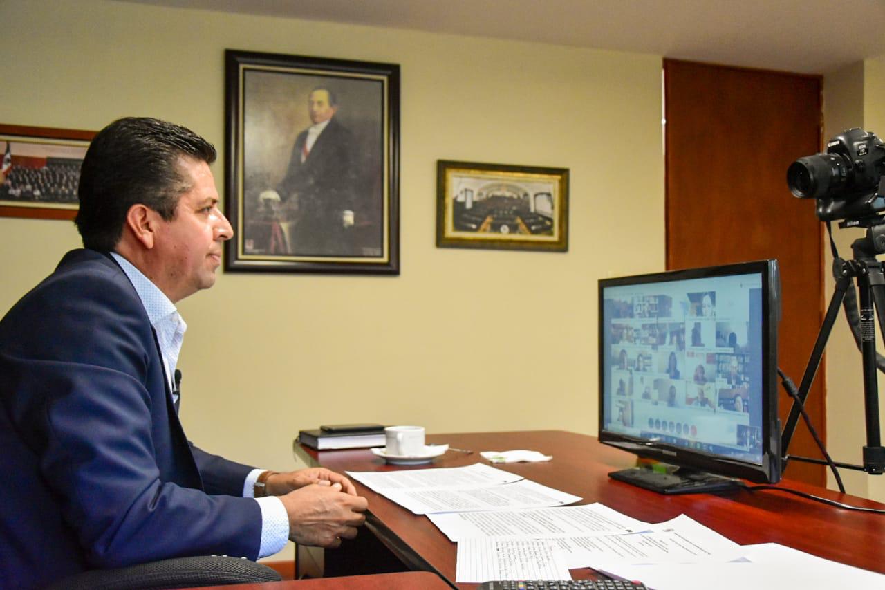 Morelia, Mich., A 28 de Abril de 2020.- Ante las condiciones que atraviesa la sociedad mexicana, Toño García, Senador de la República, sostuvo una reunión de trabajo con Graciela Márquez Colín, titular de la Secretaría de Economía, con la finalidad de impulsar un paquete de reformas para facilitar la entrada en vigor del Tratado México Estados Unidos y Canadá (T-MEC).