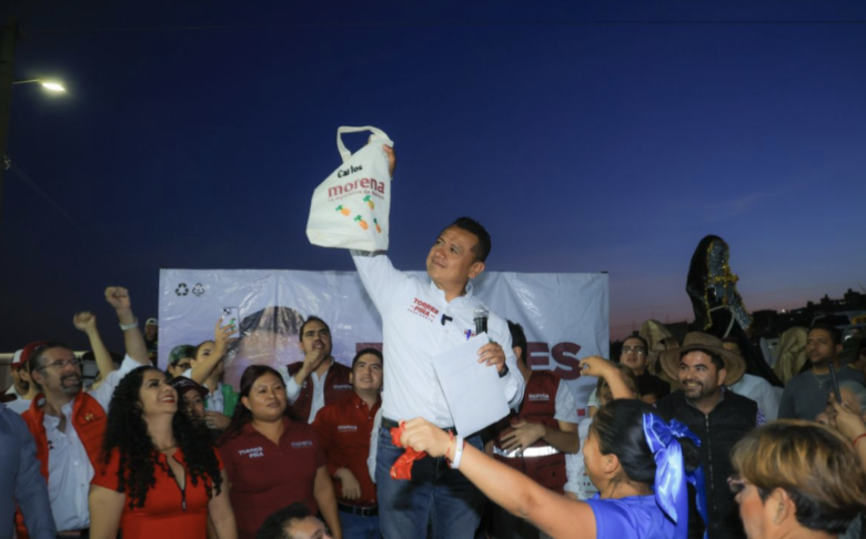 En la colonia Ciudad Jardín, donde estuvo acompañado por cientos de simpatizantes de su proyecto, el abanderado de los partidos Morena, del Trabajo (PT) y Verde Ecologista