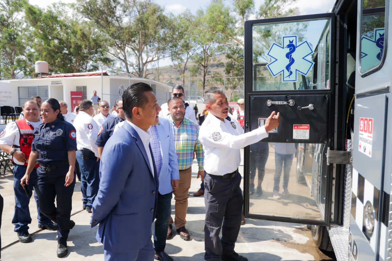 El secretario de Gobierno, Carlos Torres Piña, y el coordinador del Sistema Penitenciario, Ignacio Mendoza Jiménez, cortaron el listón inaugural de esta unidad e hicieron entrega de dos camiones de bomberos, una ambulancia y tres juegos de equipo estructural para bomberos.