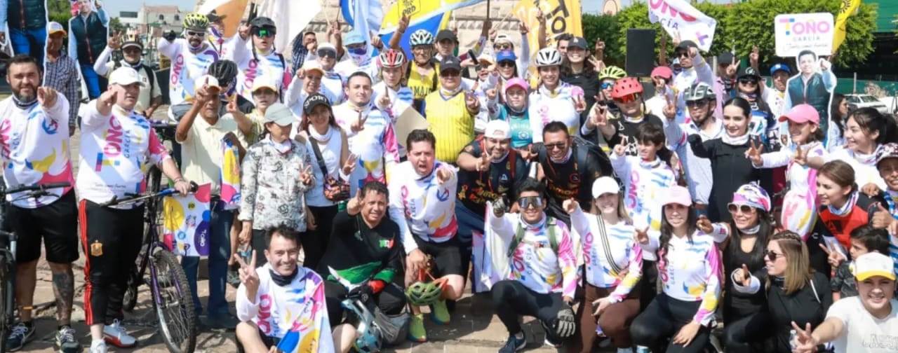 La rodada ciclista «Vamos con Toño», inició a la altura de la plaza Morelos, hacia el poniente de la ciudad, en el obelisco al General Lázaro Cárdenas.