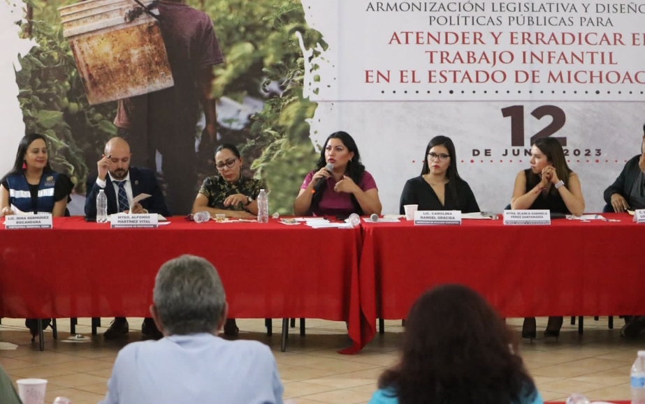 Uruapan, Mich., 13 de Junio del 2023.- En el marco del Día Internacional Contra el Trabajo Infantil, la Diputada Local del Partido del Trabajo, Brenda Fraga Gutiérrez, realizó el Foro denominado “Armonización Legislativa y Diseño de Políticas Públicas para Atender y Erradicar el Trabajo Infantil en el Estado de Michoacán”, que contó con la participación de los diferentes actores de la sociedad, con la intención de crear conciencia de esta práctica, la cual es normalizada y vista de manera positiva.