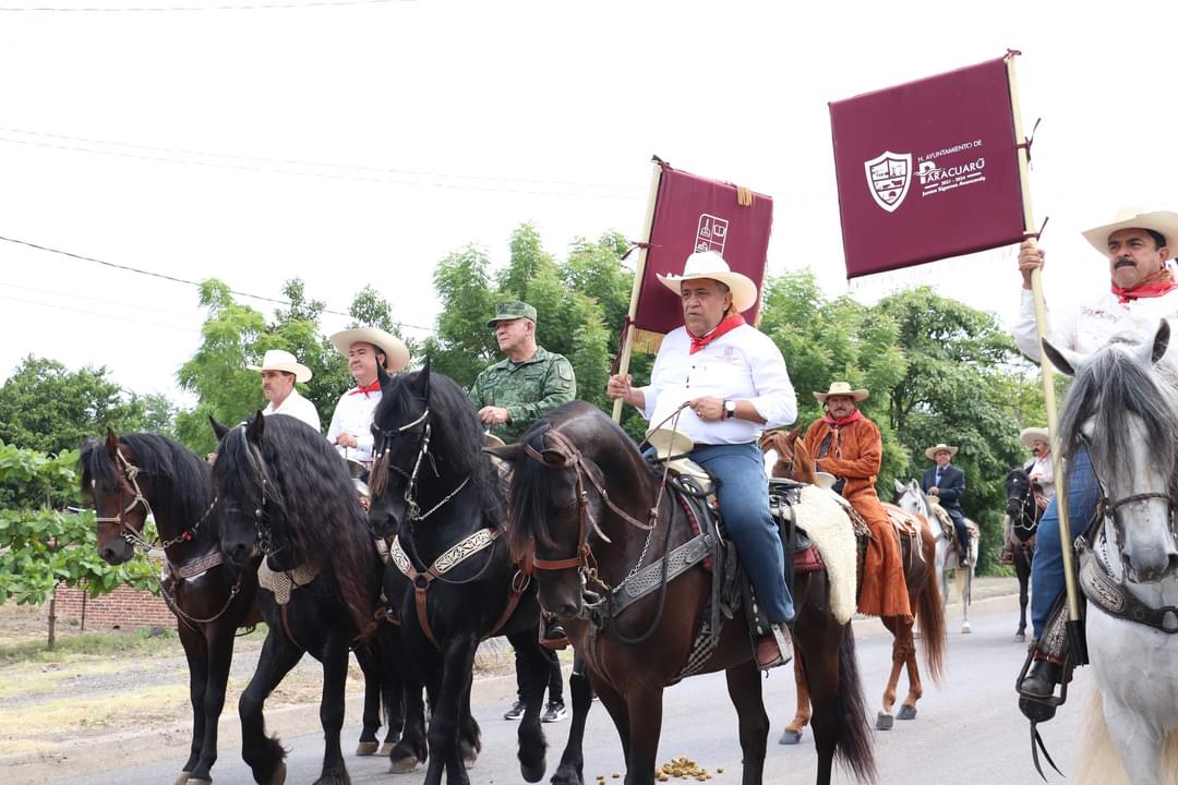 El contingente encabezado por el presidente municipal, José Luis Cruz Lucatero acompañado por el general de Brigada, Enrique Covarrubis López; así como el alcalde de Parácuaro, Huriel Bautista; 1, 850 jinetes y 250 amazonas y 200 rurales; además de Armando Posadas vestido con un traje de cuera que utilizó para la gesta de la firma de la primerl Constitución junto a los Insurgentes.