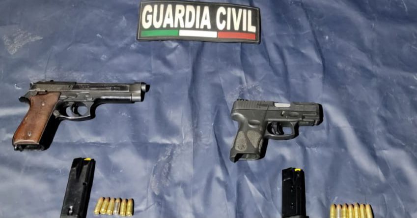 Durante las tareas para evitar la comisión de conductas ilícitas, en la colonia Ejidal Sur, los agentes de la Guardia Civil aprehendieron a dos hombres, a quienes se les localizaron dos armas de fuego. Posteriormente, en el Fraccionamiento Los Encinos, dos mujeres y dos hombres fueron asegurados, mismos que portaban aproximadamente 36 gramos de sustancia granulada, al parecer metanfetamina y 365 gramos de hierba verde seca, con las características propias de la marihuana.
