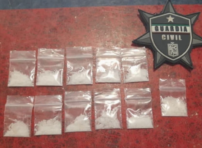 Luego de entrevistarse con el masculino y solicitarle una inspección oficial, los guardias civiles localizaron entre las pertenencias del ahora implicado, 11 envoltorios con aparente metanfetamina. Fue asegurado junto a la droga y el vehículo, para su puesta a disposición ante la autoridad competente.