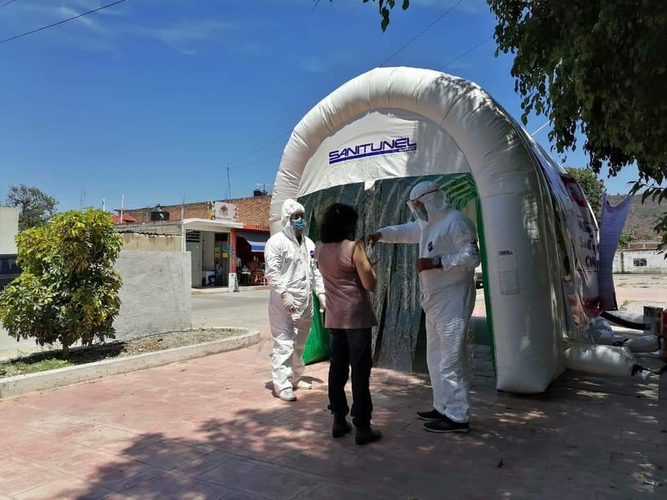 Morelia, Mich., a 13 de Abril del 2020.,- Los túneles sanitizantes con ráfagas de ozono en seco, que puso en marcha el diputado Norberto Antonio Martínez Soto, en el Distrito de Hidalgo, son un mecanismo de prevención ante la contingencia sanitaria por el coronavirus y con este mecanismo, se logra eliminar en un gran porcentaje los virus y bacterias.