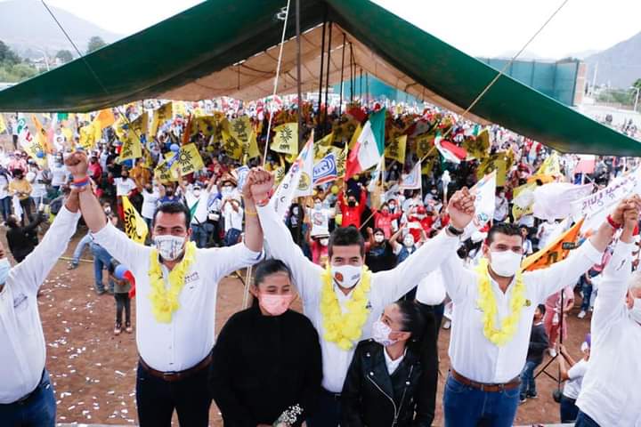 Tuxpan, Mich., a 31 de mayo de 2021.- Miles de habitantes de este municipio dieron su apoyo al candidato del Equipo por Michoacán a diputado local por el Distrito de Huetamo, Juan Luis García Conejo, quien ayer arropó al abanderado de esta alianza a la alcaldía, Carlos Paredes Correa, durante su cierre de campaña.
