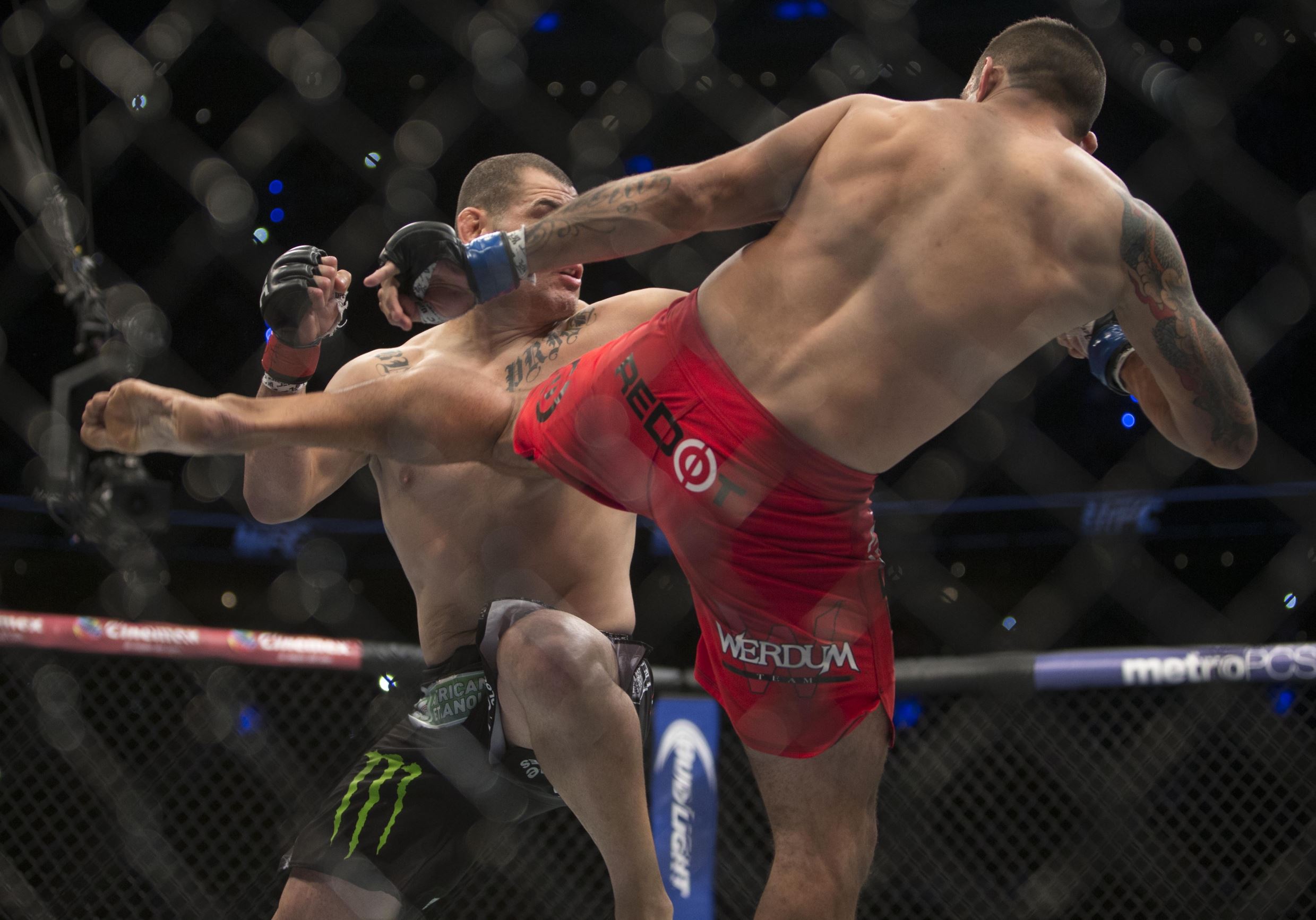 Velásquez se lanzó con todo al arranque ante un brasileño que parecía tratar de desacelerar el ritmo de la pelea. Pero Werdum (20-5-1), experto en jiu jitsu, hizo ajustes ante el fracaso de su estrategia inicial.