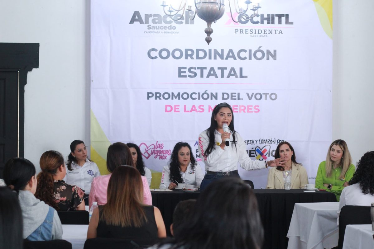 Araceli Saucedo apuntó que el rescate de México es el llamado mayúsculo en esta contienda, para garantizar las libertades, los derechos, el fortalecimiento de las instituciones que tanto esfuerzo han costado al país, para que la polarización y el encono dejen de ser ruta emanada desde la titularidad del Ejecutivo Federal, para que todas y todos cuenten con un presente y futuro promisorio para vivir y desarrollarse.