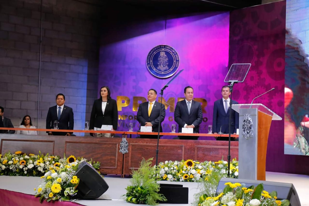 Uruapan, Michoacán, a 03 de Agosto de 2019.-En cumplimiento a lo que mandata la Constitución, el Presidente Municipal de  Uruapan, Víctor Manuel Manríquez González, rindió su Primer Informe de Labores, en donde detalló las acciones realizadas  a favor de las y los uruapenses.